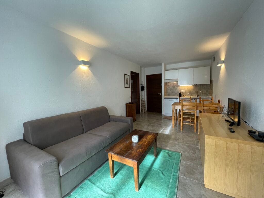 Grangesises, zona betulle grazioso bilocale così composto: ingresso, soggiorno con angolo cottura, camera matrimoniale, servizio finestrato con doccia. Box auto Disponibile per periodo estivo dal 20 giugno al 30 agosto